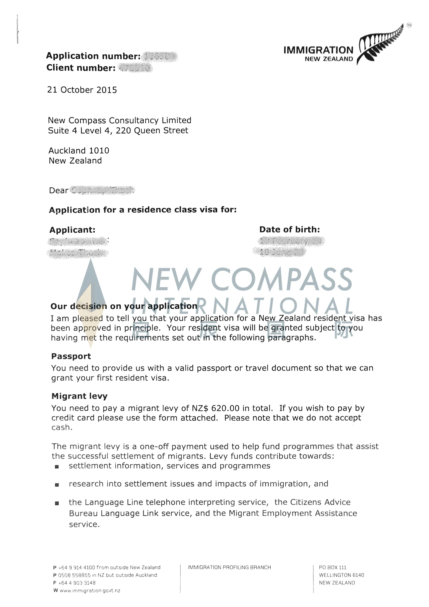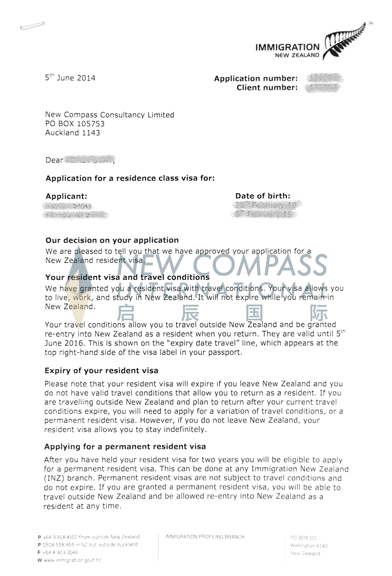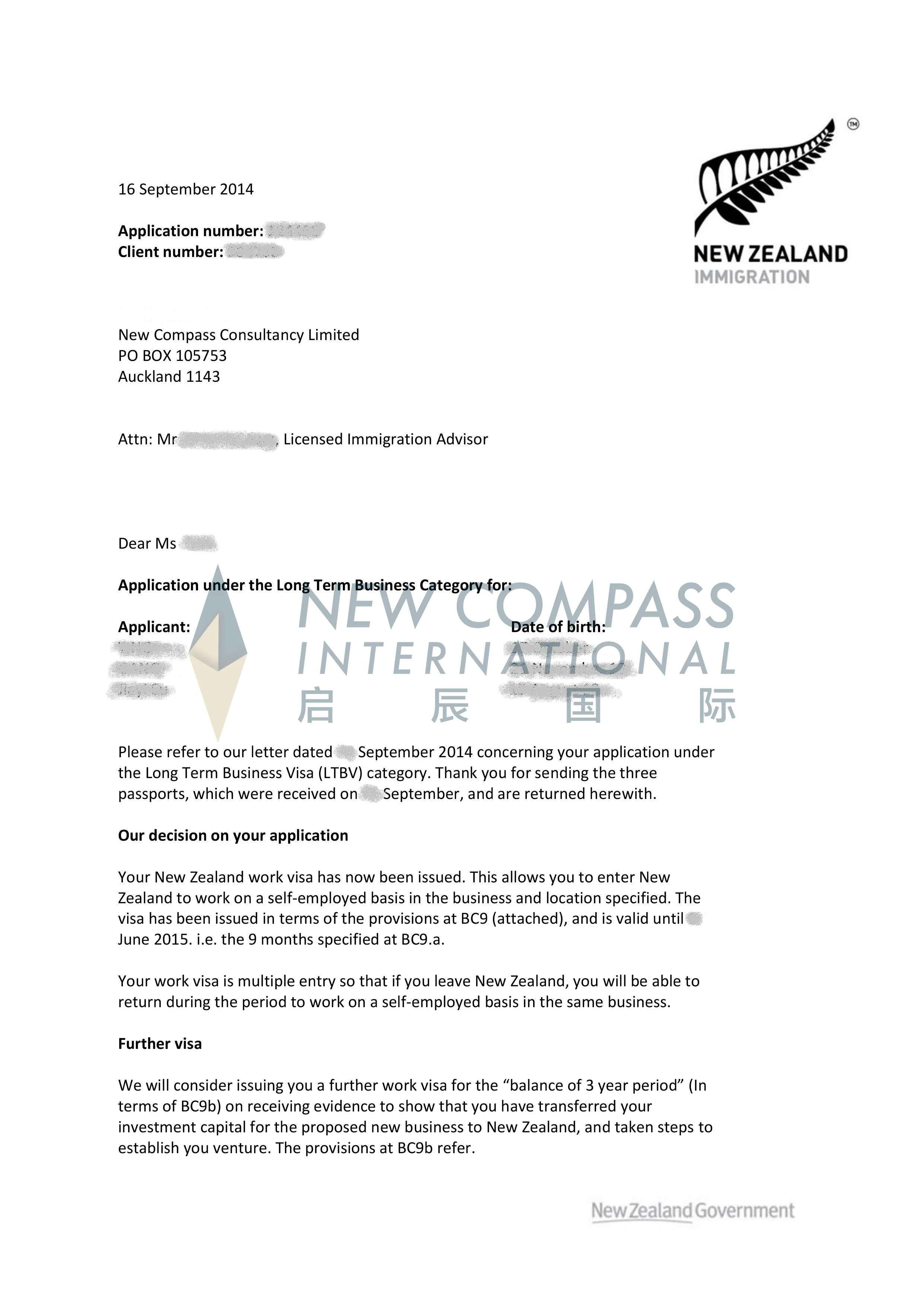 我司成功办理国内新西兰投资移民申请,办理一步到位,未曾收到新西兰移民局质疑信。