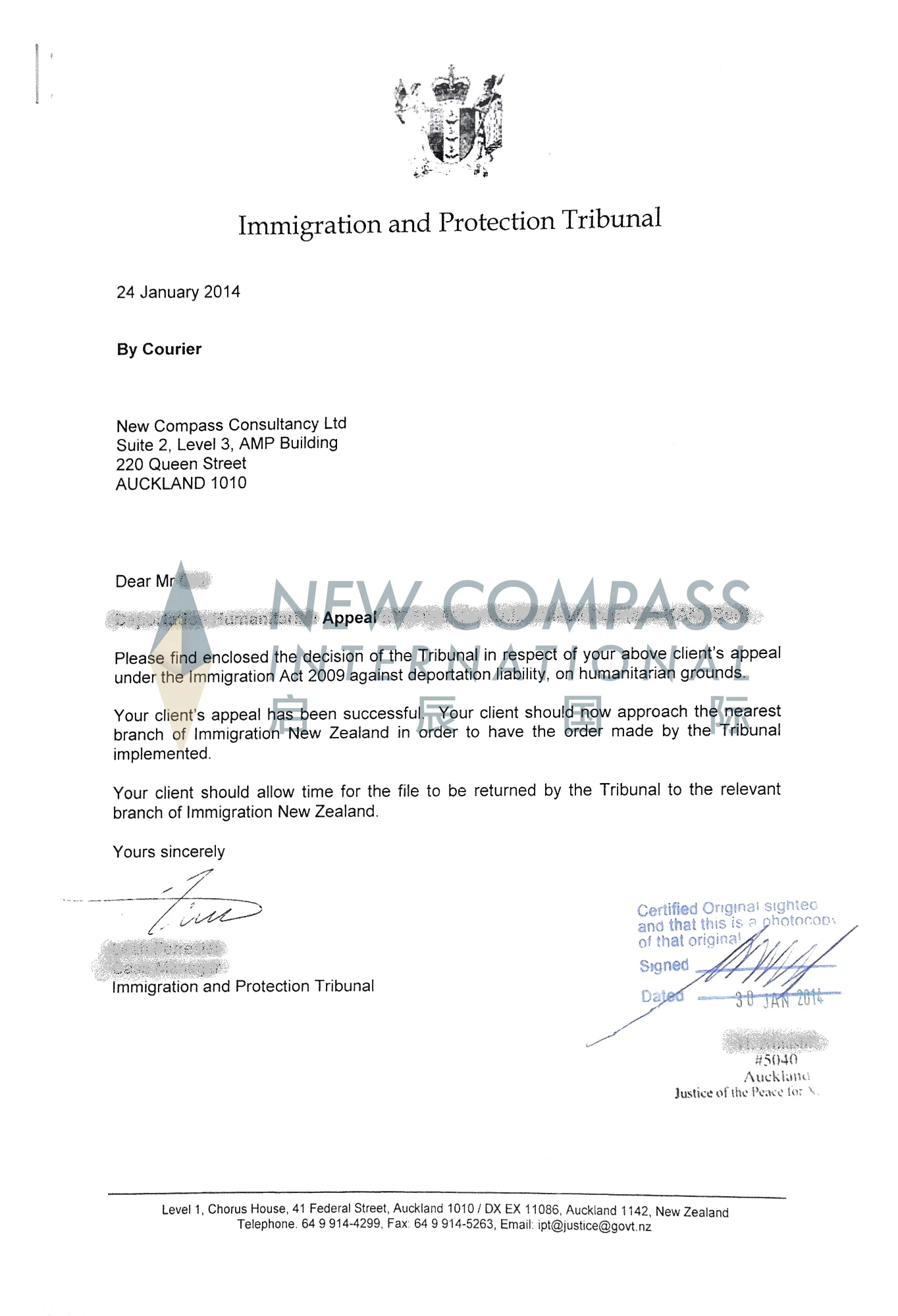 因申请人工作签证遭新西兰移民局拒签,我司为此成功上诉,申请人重新获得新西兰工作签证。